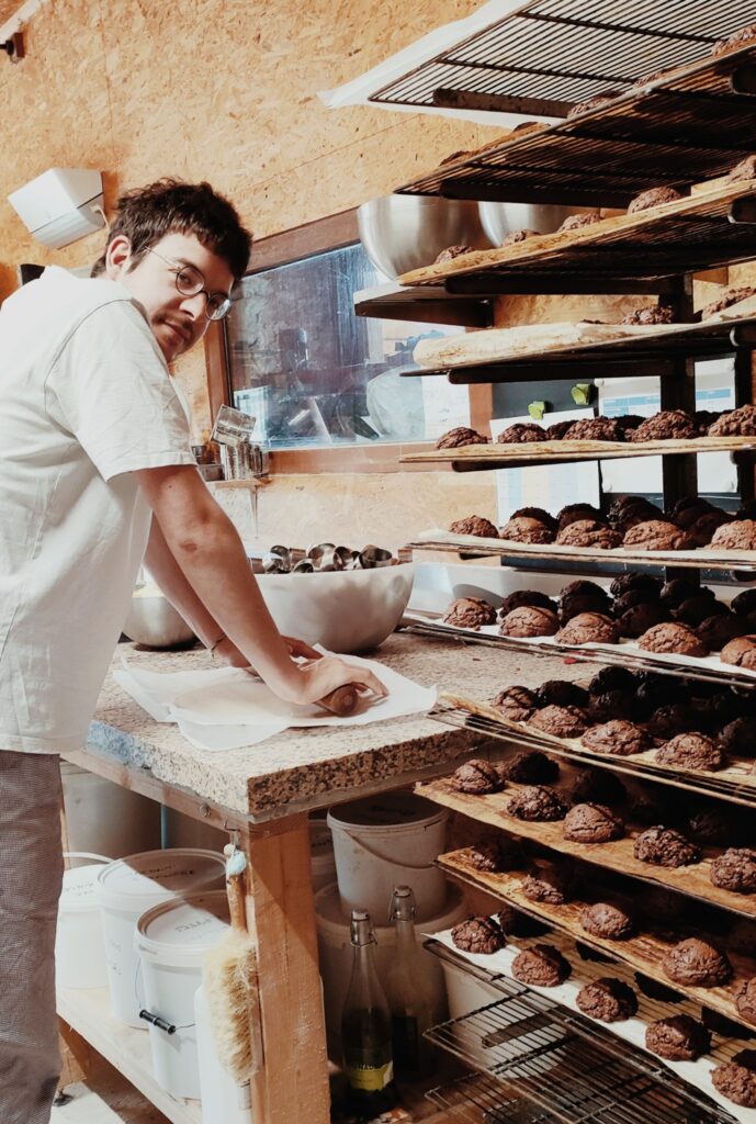 Nous produisons une gamme de biscuits variés. La farine est produite sur la ferme, et les autres ingrédients sont issus de l’agriculture biologique. Antoine fait partie de notre équipe, et c’est lui qui les concocte chaque semaine avec amour, pour une fraicheur et un moelleux exceptionnel !